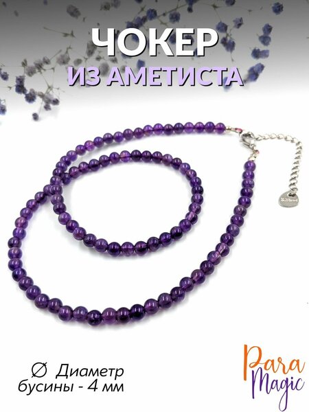 Откройте двери к волшебству с нашим чокером из натурального аметиста! Украшение на шею женское, выполнено из круглых бусин диаметром 4мм из натурального аметиста. Колье из натуральных камней удобно носить, оно застегивается на карабин. Первоклассная ручная работа. Фурнитура из нержавеющей стали. Длина изделия представлена в 3 вариантах: 36,40,44 см + длина дополнительной цепочки 5 см. Месторождение камня: Бразилия. Отправьтесь в путешествие по миру духовного и внутреннего роста с этим уникальным украшением. Чокер из натурального аметиста не только очарует ваш взгляд, но и обладает множеством полезных и магических свойств. Магические свойства аметиста: - Очищение и защита: аметист считается камнем, который обладает способностью очищать энергетическое поле от негативных влияний и защищать от злых сил. - Поддержка медитации и практики осознанности: этот камень способствует успокоению ума и созданию гармоничной атмосферы для практик внутреннего развития. - Раскрытие интуиции и духовного познания: аметист помогает активировать третий глаз и расширить сознание, открывая доступ к глубинным знаниям и интуиции. Полезные свойства аметиста: - Улучшение качества сна: аметист способствует расслаблению и успокоению, что поможет вам достичь глубокого и восстановительного сна. - Снятие чувства усталости и стресса: этот камень помогает восстанавливать энергию и противостоять негативному воздействию стресса. - Поддержка душевного равновесия: аметист способствует устранению эмоциональных перепадов и создает атмосферу спокойствия и гармонии. Оригинальный подарок и прекрасное украшение: Наш чокер из натурального аметиста - это идеальный выбор для тех, кто ценит уникальность и магию камней. Он подойдет как для повседневного использования, так и для особых случаев, добавляя таинственности и элегантности вашему образу. Откройте дверь к духовному пробуждению и воспользуйтесь полезной энергией аметиста. Подарите себе или своим близким уникальную бижутерию, которая будет напоминать о важности саморазвития и внутреннего роста. Подарите своей любимой, маме или подруге, их улыбка и благодарность будут вашей наградой. Украшение с любовью и заботой упаковано в подарочную коробочку, которая идеально подойдет на подарок. Волшебный бренд ParaMagic - пространство для тех, кто ценит не только красоту в аксессуарах, но интересуется натуральными камнями, которые могут творить по истине чудеса! Вам нужно только заказать и забрать в пункте выдачи.