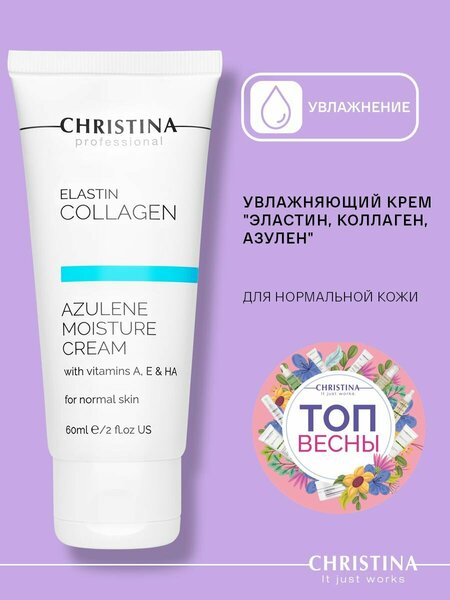 Christina Elastin Collagen Azulene Moisture Cream with Vit. A, E & HA for normal skin Увлажняющий крем для лица с витаминами A, E и гиалуроновой кислотой Эластин, коллаген, азулен 60 мл.