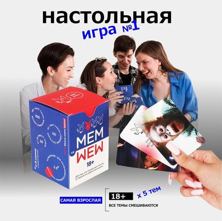 О товаре Настольная игра «Мем Батл» 18+ «для тех, кто познал все тяготы и прелести взрослой жизни» скрасит ваш вечер в компании друзей или близких своими игривыми ситуациями и взрослым юмором. Дополнение подходит для самостоятельной игры в маленькой компании или можно расширить базовую версию и играть еще дольше и веселее. От 2 до 5 человек отдельно (с другими тематическими дополнениями до 10 человек, с базовой до 15 (или вдвоем, но еще интереснее) Как играть? Правила очень просты и поэтому играть интересно: подбираем самый подходящий и смешной мем к ситуации. Никаких долгих размышлений, сложных стратегий - быстрая динамичная игра для веселого провождения времени. Смешные мемы и ситуации передают эмоции и чувства, взятые "из жизни"! В комплект входит: карточки с ситуациями – 50 шт; карточки с картинками-мемами – 100 шт; разделитель колод; коробка; 4 варианта правил игры. Остроумные ситуации + Отборный, смешной мем = целый вечер смеха для любой кампании Рекомендованный возраст: от 18 лет Это оригинал. Мы создатели игры Мем Батл (раньше назывались «Что за мем?» Мы появились первые в России, а сегодня нас копируют издательства). Что нас отличает от других: У нас 6 версий игры (и все игры смешиваются между собой) 4 варианта правил игры (играть точно не надоест) Можно играть вдвоём! (В базовую, 18+ и детскую) Игра в подборке лучших по версии журнала «Elle Decoration» (09.22) У нас единогласно самые смешные ситуации (по отзывам клиентов) Наши фишки: Все наши игры смешиваются между собой или играются отдельно, как в самостоятельные тематические версии. Наш козырь в том, что ни одна карта ни в одном дополнении не повторяется! Безлимитные дополнительные ситуаций на сайте. Теперь играть можно бесконечно. Скругленные углы у игральных карточек не мнутся, не цепляются, за счет чего надолго сохраняют презентабельный вид. Защитное покрытие карточек обеспечивает им долговечность, что немаловажно для игр. Используйте эту великолепную возможность отвлечь гостей праздника или вечеринки от электроники и гаджетов с помощью веселой игры. Развлекательная игра станет прекрасным подарком для взрослых, для вечеринок и досуга в кругу друзей. Возьмите настольную игру с собой в поход, на отдых, на дачу, в поездку или путешествие и проводите время весело! _________________ Собери всю серию! Еще у нас есть: ⁃ Базовая универсальная классика (от 14 лет до 90 лет) не ошибётесь ⁃ Татарстан (если ты никогда не был в Татарстане тебе будет еще интереснее путешествуй прямо из дома (игра, кстати, была презентована лично Президенту РТ) ⁃ Полбатона - мы ее прозвали «студенческой» это ровно половинка базовой версии, второй половины нет (зато дёшево) ⁃ Новогодняя — это зимний must have. Самая уютная и атмосферная, можно играть даже летом, но предупреждаем, может потянуть на оливье ⁃ Детская - новинка! Мы ее создавали для детей от 6 до 15, но в восторге от неё даже взрослые, иногда ведь так хочется немного ностальгии. Детям все лучшее у них в наборе целых 200 ситуаций вместо 50! Размер упаковки (Длина х Ширина х Высота), 110*70*70 мм
