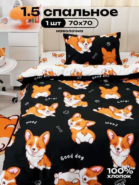 Хочешь жить в уютной спальне и наслаждаться каждым днем? У Crazy Getup есть оригинальные комплекты хлопкового постельного белья на одноместную кровать. У нас найдется лучшее постельное белье! Комплект с забавным корги порадует тех, кто не может жить без животных, особенно собак! Черно-белое постельное белье с очаровательными щенятами — источник милоты. Радостные бело-рыжие собачки подарят массу позитива всем, кто обожает щеночков и других домашних любимцев: с таким КПБ у тебя в комнате всегда будет царить позитивная атмосфера. В эстетичный полуторный постельный набор входят пододеяльник размером 215х145 см, простыня 220х150 см, наволочка 70х70 см – 1 штука. Необычное и прикольное постельное белье 1,5 спальное идеально подойдет для ребенка или для подростка, которые спят на кровати с матрасом 80х180, 90x180, 90х190 или 90х200. Детское постельное белье 1.5 спальное из поплина (100% хлопок) не линяет. Мягкий и нежный поплин — ткань, которая отлично сохраняет стойкий рисунок. Ты будешь с удовольствием спать на нежном постельном односпальном белье как летом, так и зимой. Полутороспальное трендовое белье — универсальный подарок для девочки подростка на день рождения. Такой подарочный односпальный комплект подойдет внучке, а также сестре подросткового возраста. Его также можно подарить подруге и девушке. Постельное белье 1 5 спальное - подарок на новоселье, который отвечает всем требованиям безопасности. Следуя рекомендациям по уходу, вы продлите сохранность текстиля детям для дома и спальни от бренда Crazy Getup / Крейзи гетап / Крэзи. Постельное белье стирается в машинке на деликатном режиме. С Ивановским домашним текстилем от Crazy Getup ты проявишь свою индивидуальность и будешь с комфортом отдыхать каждую ночь дома и на даче на милой постели. У нас есть прикольные штуки на любой вкус! Crazy Getup – молодежный бренд. Разнообразие принтов, стилей, качественный материал, выверенный крой. Будь в тренде с CRAZY GETUP. Обратите внимание, что постельное белье для молодежи является невозвратным.