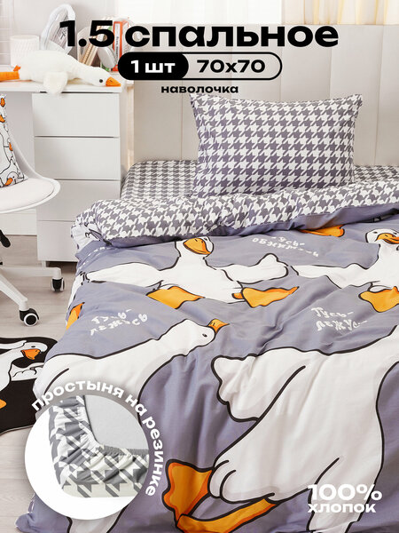 Хочешь жить в уютной спальне и наслаждаться каждым днем? У Crazy Getup есть оригинальные комплекты хлопкового постельного белья на одноместную кровать. У нас найдется лучшее постельное белье! Полутороспальный комплект с гусем-обнимусем — настоящая находка для любителей мемов! Постельное белье порадует тех, кто фанатеет от легендарной птицы. Двусторонний пододеяльник с гусями стильно смотрится с серо-белыми наволочкой и простынью с узором: много гусей не бывает! Ты с удовольствием отдохнешь на таком постельном белье! В эстетичный полуторный постельный набор входят пододеяльник размером 215х145 см, натяжная простынь 200х90х25 см с резинкой по углам, наволочка 70х70 см – 1 штука. Необычное и прикольное постельное белье 1,5 спальное идеально подойдет для ребенка или для подростка, которые спят на кровати с матрасом 80х200, 80х190, 90х190 или 90х200. Детское постельное белье 1.5 спальное из поплина (100% хлопок) не линяет. Мягкий и нежный поплин — ткань, которая отлично сохраняет стойкий рисунок. Ты будешь с удовольствием спать на нежном постельном односпальном белье как летом, так и зимой. Полутороспальное трендовое белье — универсальный подарок для мальчика или девочки подростка на день рождения. Такой подарочный односпальный комплект подойдет внуку и внучке, а также сестре и брату подросткового возраста. Его также можно подарить подруге и девушке, другу и парню. Постельное белье 1 5 спальное - подарок на новоселье, который отвечает всем требованиям безопасности. Следуя рекомендациям по уходу, вы продлите сохранность текстиля детям для дома и спальни от бренда Crazy Getup / Крейзи гетап / Крэзи. Постельное белье стирается в машинке на деликатном режиме. С Ивановским домашним текстилем от Crazy Getup ты проявишь свою индивидуальность и будешь с комфортом отдыхать каждую ночь дома и на даче на милой постели. У нас есть прикольные штуки на любой вкус! Crazy Getup – молодежный бренд. Разнообразие принтов, стилей, качественный материал, выверенный крой. Будь в тренде с CRAZY GETUP. Обратите внимание, что постельное белье для молодежи является невозвратным.