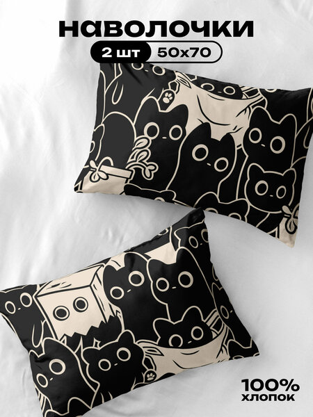 Наволочки Crazy Getup Catbox 16914-1, поплин, хлопок 100%, 50 см х 70 см, 2шт