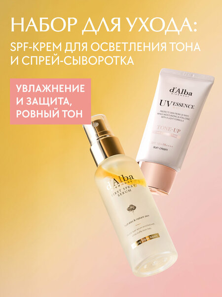 1) d'Alba Спрей-сыворотка мультифункциональная White Truffle First Spray Serum 50мл 2) d'Alba Cолнцезащитный крем для осветления тона Waterfull Tone-Up Sun Cream SPF 50+ 50мл 3) Крем для рук Nourishing Hand Cream 5ml 4) Брендированный брелок-зеркальце 1шт 5) Брендированный пакет 1шт