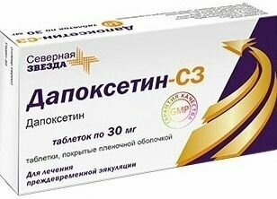 Внутрь. Таблетку следует проглатывать целиком, запивая, по крайней мере, одним полным стаканом воды. Препарат Дапоксетин-СЗ можно принимать независимо от приема пищи. Не следует начинать прием препарата с дозы 60 мг. Взрослые мужчины от 18 до 64 лет Рекомендуемая начальная доза для всех мужчин составляет 30 мг; эту дозу принимают за 1-3 часа до предполагаемого полового акта. При недостаточном эффекте и хорошей переносимости дозы 30 мг (нет нежелательных реакций средней тяжести или тяжелой степени или продромальных симптомов, которые могут предшествовать обмороку), дозу можно увеличить до максимально рекомендуемой 60 мг с приемом за 1-3 часа до полового акта. Частота и тяжесть нежелательных реакций увеличивается при приеме препарата в дозе 60 мг. Пациентам, у которых прием препарата Дапоксетин-СЗ в дозе 30 мг сопровождается симптомами ортостатической гипотензии, нельзя повышать дозу препарата до 60 мг. Препарат следует принимать не чаще 1 раза в сутки. Максимальная суточная доза при хорошей переносимости составляет 60 мг. Врач, назначающий препарат Дапоксетин-СЗ для лечения преждевременной эякуляции, должен оценить риск и пользу применения препарата после первых 4 недель лечения или как минимум после приема первых 6 доз и определить соотношение риск-польза для принятия решения о целесообразности дальнейшего лечения препаратом Дапоксетин-СЗ. Данные об эффективности и безопасности применения дапоксетина в течение более 24 недель ограничены. Клиническую необходимость продолжения терапии и соотношения польза/риск от применения препарата Дапоксетин-СЗ следует оценивать как минимум каждые 6 месяцев. Пациенты с нарушением функции почек Для пациентов с почечной недостаточностью легкой степени или средней степени тяжести коррекции дозы не требуется, но рекомендуется проявлять осторожность. Препарат Дапоксетин-СЗ не рекомендуется принимать пациентам с почечной недостаточностью тяжелой степени. Пациенты с нарушением функции печени Препарат Дапоксетин-СЗ противопоказан пациентам с печеночной недостаточностью средней степени тяжести и тяжелой степени (классы В и С по классификации Чайлд-Пью). Пожилые пациенты (65 лет и старше) Эффективность и безопасность дапоксетина у пациентов 65 лет и старше не установлены. Пациенты с низкой активностью изофермента CYP2D6 и пациенты, одновременно принимающие сильные ингибиторы CYP2D6 Следует проявлять осторожность при увеличении дозы препарата Дапоксетин-СЗ до 60 мг у пациентов с низкой активностью изофермента CYP2D6 или у пациентов, принимающих препарат Дапоксетин-СЗ одновременно с сильными ингибиторами изофермента CYP2D6. Пациенты, получающие сильные или умеренно активные ингибиторы изофермента CYP3A4 Одновременное применение препарата Дапоксетин-СЗ с сильными ингибиторами изофермента CYP3A4 противопоказано. При одновременном приеме препарата Дапоксетин-СЗ с умеренно активными ингибиторами изофермента CYP3A4 доза препарата должна быть снижена до 30 мг, при этом также следует соблюдать осторожность.