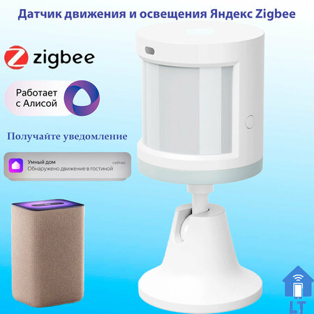Датчик движения и освещения ZigBee - это устройство, совместимое с системой умного дома Яндекс. Он может быть установлен практически в любом месте, будь то стена, полка или стол, и запускать различные сценарии при изменении освещенности и наличии движения в помещении. Датчик обладает компактными размерами и питается от батарейки, заряда которой хватит на 2 года непрерывной работы. Угол обзора датчика составляет 170 градусов, а точность фиксации данных гарантирована на расстоянии до 7 метров. Для настройки и подключения используется протокол связи ZigBee. Датчик движения и освещения позволит запускать различные сценарии при изменении яркости в помещении в автоматическом режиме. Например, при недостаточной яркости устройство способно включить лампу, а при ярком солнечном свете закрыть шторы. Для полноценной работы необходимо подключение датчика к системе умного дома. Особенности датчика включают компактные размеры, безопасное подключение, запуск различных сценариев и простую настройку и подключение.