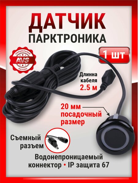 Датчик парктроника. Компания AVS — одна из ведущих компаний на российском рынке авто-аксессуаров. Датчик парктроника для автомобиля. На протяжении более 20 лет мы производим высококачественные и доступные автомобильные аксессуары под собственным брендом на крупнейших производственных мощностях России и Китая. Ассортимент продукции AVS насчитывает более 3 000 наименований в 60 товарных группах, что позволяет удовлетворить потребности широкого круга автолюбителей. Датчик парктроника - это надежное и качественное решение для вашего автомобиля. Благодаря своей конструкции и функциональности, он станет незаменимым помощником при парковке. Датчик парктроника для Авто, имеет диаметр 20 мм и черный цвет. В комплекте идет один датчик, который легко устанавливается благодаря своему врезному способу. Длина кабеля составляет 2,5 метра, что позволяет установить датчик в удобном для вас месте. Датчик парктроника для машины. Особенностью датчика является его водонепроницаемый коннектор и индекс защиты от попадания влаги и пыли IP67. Это обеспечивает долгую и надежную работу датчика в любых условиях, включая дождь, снег и грязь. Парктроник черный AVS - это бренд, который уже 20 лет производит автомобильные аксессуары на ведущих заводах КНР, Южной Кореи и России. Благодаря этому, компания добивается оптимального соотношения цены и качества своей продукции. Датчик парктроника черный с проводом. Выбирая датчик парктроника, вы получаете надежный и качественный аксессуар, который поможет вам безопасно парковать свой автомобиль.