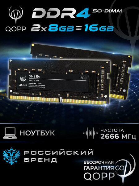 DDR4 SO - DIMM 2х 8GB — это комплект оперативной памяти для ноутбука с общим объемом 16 GB, состоящий из двух модулей по 8ГБ каждый, относящийся к категории компьютерных комплектующих, обеспечивающих стабильную работу вашего компьютера. Оперативка работает на частоте 2666 МГц, обеспечивая высокую производительность ноутбука и стабильную работу системных приложений и игр. Модули памяти DDR 4 на 16GB 2666 МГц обладают обратной совместимостью с частотами 2133 и 2400 Мгц , что позволяет использовать их на различных материнских платах с поддержкой DDR4. Данный комплект оперативной памяти предназначен для увеличения объема ОЗУ, что способствует ускорению вычислительных процессов и повышению производительности компьютера. ДДР4 является одним из популярных типов оперативной памяти для ПК и совместима с большинством современных процессоров и плат. Комплект из двух плашек гарантирует одновременную работу в двухканальном режиме, что значительно улучшает скорость обмена данными. Если вы планируете покупку и ищете такие популярные модели, как Samsung DDR4 SO DIMM 2x8GB, Crucial DDR4 SO DIMM 2x8GB, AMD Radeon DDR4 2x8GB Kingston fury beast 2x8GB, Hyperx (Hyper x) Fury Black 2x8GB, Kingbank ddr4 2x8 so-dimm или Adata Premier 2x8GB, то рассмотрите и нашу модель: DDR4 SODIMM 2x 8 =16 GB — отличный выбор, который сочетает современные технологии, высокую скорость и доступную цену. Размер, качество и возможности оперативной памяти от QOPP делают ее привлекательным вариантом для быстрой и надежной работы вашего ноутбука. Отзывы подтверждают высокое качество и эффективность работы данного устройства памяти. А для тех, кому требуется модуль большего объёма, доступен вариант 2X16 (32 GB) ДДР 4, также с обратной совместимостью по частотам 2133 и 2400 Мгц, что делает их универсальными для большинства ноутбуков. В ситуации, когда вы приобрели оперативную память с неподходящими характеристиками и при этом повредили упаковку, возврат через пункт выдачи невозможен.