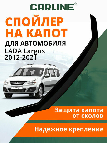 Спойлер на капот Carline из литьевого оргстекла. Применим для автомобиля Лада Ларгус (2012-2021 г. в.). Данный тюнинг преобразит ваш автомобиль. Спойлер капота Carline позволяет сохранить ЛКП автомобиля. «Мухобойка» принимает на себя удары мелких камушков и насекомых, попадающих на капот при движении по трассе. Спойлер автомобиля выполнен из литьевого оргстекла толщиной 3мм – гибкого и прочного материала. Дефлектор капота устойчив к механическому воздействию и УФ излучению. Спойлер для авто упакован в полиэтиленовую упаковку, гарантирующую отсутствие пыли и царапин. Рекомендации по использованию: Для правильной установки производитель рекомендует ознакомиться с инструкцией по установке. Правильная подготовка и монтаж спойлера позволит обеспечить максимально надежную фиксацию. • Спойлер на капот • Комплект крепежа • Инструкция по установке • Материал – литьевое оргстекло 3мм • Способ крепления – еврокрепеж • Цвет – черный глянец.