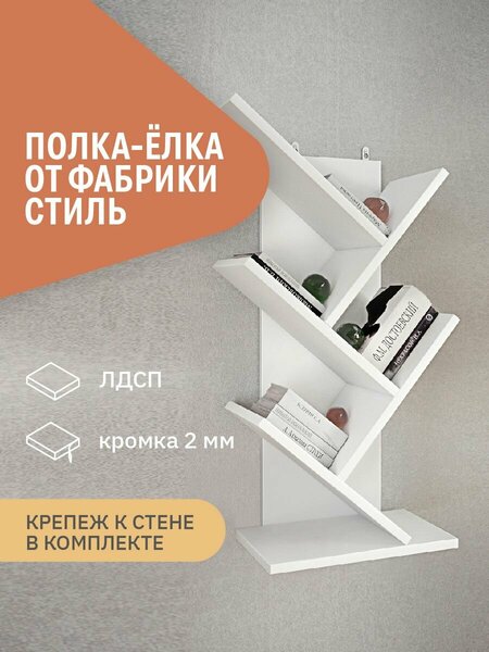 Полка настенная напольная Ёлка от Фабрики Стиль - это стильное и функциональное решение для хранения книг, вещей и предметов декора в Вашем доме. Эта полка Ёлка, изготовленная из качественного ЛДСП, станет отличным дополнением к интерьеру гостиной, детской комнаты или спальни. Ищете удобную и практичную полку для книг на стену? Полка Ёлка идеально подойдет для хранения книг, фотографий, сувениров и других мелочей. Ее оригинальный дизайн в виде елки добавит изюминку в Ваш интерьер и создаст уютную атмосферу. Преимущества полки настенной напольной Ёлка:
