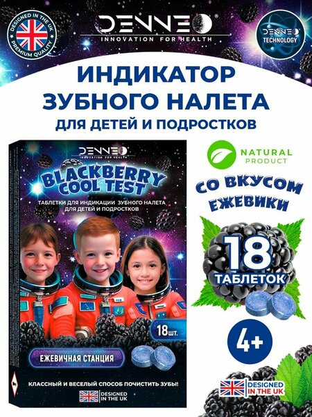 DENNEO Индикатор зубного налета детский со вкусом спелой ежевики для детей и подростков ежевичная станция (4+) Таблетки капсулы для индикации детского зубного налета/выявления, поиска зубного камня, налета, уход за зубами, гигиена полости рта 18 шт.