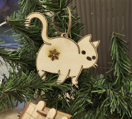 Достоинства:Прикольная, пахнет деревом Недостатки:След снежинки может быть пережжен и оттого больше походит на задний проход Комментарий:Прикольная елочная игрушка для кошатников