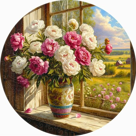 Пазл "Деревенские Пионы" из коллекции "Цветочные букеты" включает 224 детали, создающие изображение пышных пионов на подоконнике в русской деревне. За окном мирно шелестят березки, добавляя к картине ощущение летнего тепла и спокойствия. Пионы, символы богатства и процветания, известны своими великолепными бутонами и насыщенными цветами, приносят в дом ощущение праздника и уюта. В пазле присутствуют тематические фигурные детали с цветочными мотивами, которые углубляют и обогащают визуальный опыт сборки. Эти элементы делают процесс сборки не только увлекательным, но и медитативным. Подходящий в качестве подарка на день рождения, 8 марта или на другой праздник, этот пазл идеален для взрослых, способствует развитию моторики и действует как антистресс. Предполагаемое время сборки около 3-4 часов. "Деревенские Пионы" станут прекрасным дополнением к любому интерьеру, наполняя пространство атмосферой летнего сада и домашнего тепла.