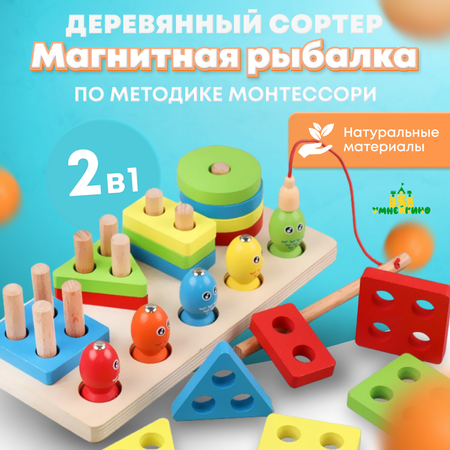Магнитная рыбалка и сортер пирамидка для малышей. Одна из лучших развивающих игрушек. Деревянный сортер и магнитная рыбалка - это уникальная игрушка, которая подходит для детей от 3 до 7 лет и способствует их развитию. Она сочетает в себе две увлекательные игры - сортер и рыбалку, которые развивают мелкую моторику, координацию движений и логическое мышление. Сортер представляет собой деревянную рамку с отверстиями различной формы и размеров, в которые нужно вставить соответствующие фигуры. Дети учатся различать форму, цвет и размер предметов, а также развивают навыки мелкой моторики. Магнитная рыбалка, в свою очередь, позволяет детям ловить рыбок с помощью магнитов, которые находятся на кончике удочки. Это развивает координацию движений, внимание и концентрацию. Кроме того, игрушка выполнена из экологически чистых материалов и не содержит вредных веществ, что делает ее безопасной для здоровья ребенка. Игры монтессори. Сортер и магнитная рыбалка.