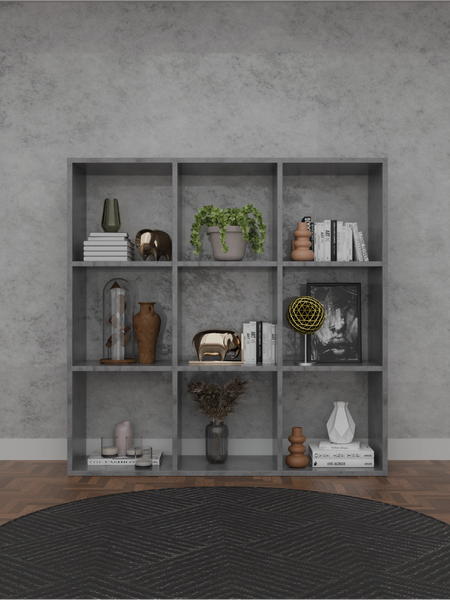 Деревянный стеллаж из 9 секций с размерами 96 х 96 см и высотой 30см оксид