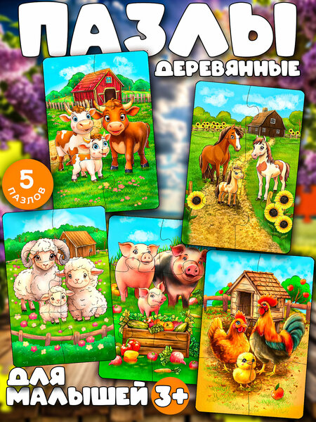 Представляем вашему вниманию деревянные развивающие пазлы для малышей "Веселая ферма". Этот яркий и увлекательный набор создан специально для детей от 3 лет и станет отличным помощником в развитии мелкой моторики и логического мышления. Изготовленные из натурального дерева, пазлы безопасны для детей и отличаются высокой прочностью. Уникальный дизайн с изображением животных фермы не только привлечет внимание вашего малыша, но и пробудит интерес к окружающему миру.
