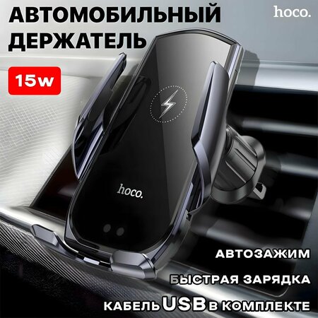 Держатель c беспроводной зарядкой Hoco CA202 Plus 15W черный