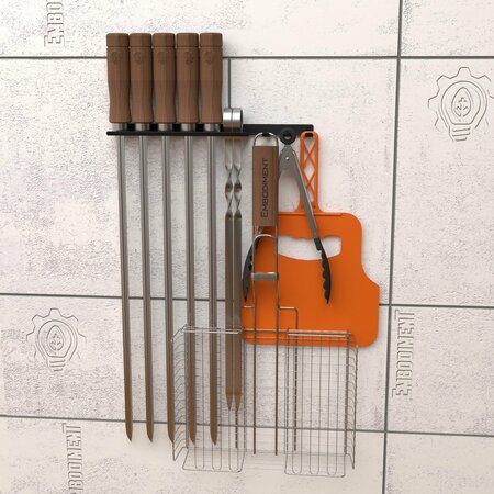 Кронштейн позволяет легко и удобно расположить шампура различной формы и конфигураций, став идеальным местом их хранения в зоне барбекю, мангальной зоне или зоне отдыха, а также в гараже, на балконе, складе и мастерской, кладовке и в других местах.
