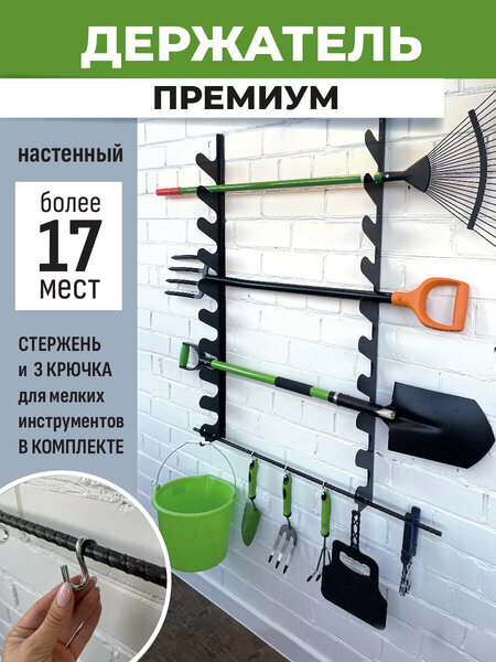 Удобное решение для хранения садового инвентаря — настенный держатель, который станет незаменимым помощником для дачи, сада, гаража и огорода. Этот держатель для садового инструмента обеспечивает компактное и организованное хранение ваших ручных инструментов, таких как лопаты, грабли, вилы и удочки. В комплект входят два кронштейна длиной 118 см, идеально подходящие для размещения более 17 единиц инвентаря. Теперь ваши инструменты всегда будут под рукой и не будут занимать ценное пространство на земле или в шкафу. Это решение позволяет вам поддерживать порядок и легко находить нужный инструмент в любое время. Настенный держатель для инвентаря включает в себя прочный полимерный стержень, три металлических крючка и 10 саморезов с дюбелями. Все элементы конструкции тщательно продуманы для обеспечения надежности и долговечности. Простота установки и использования делают этот держатель идеальным выбором для каждого владельца дачи или огорода. Данное устройство не только упрощает организацию пространства, но и способствует более эффективной работе на участке. Вы сможете быстро получать доступ к необходимым инструментам, что значительно ускорит выполнение садовых задач. Устраните беспорядок и создайте оптимальные условия для ухода за вашим садом или огородом с помощью этого настенного держателя. Выбирая наш держатель для садового инструмента, вы делаете шаг к более комфортной и продуктивной работе на вашем участке. Надежность, функциональность и удобство — вот три ключевых преимущества, которые сделают ваше время на свежем воздухе более приятным и продуктивным. Пользуйтесь умно, храните с удобством и наслаждайтесь результатами своего труда.