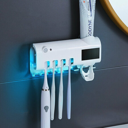 Держатель для зубных щеток настенный со стерилизатором и дозатор для зубной пасты обеспечит дезинфекцию ваших зубных обычных и электрических щеток до 99,9% и заменит ваш подстаканник для зубных щеток, благодаря чему поможет поддерживать чистоту вашей зубной щетки после каждого использования. Стакан для зубных щёток и пасты даёт не только удобство и защиту ваших средств личной гигиены, но и экономию пространства - дезинфицируйте и стерилизуйте до 4 зубных щеток и бритву одновременно. Подставка для зубных щёток проста в использовании - просто поместите набор зубных щеток в стерилизатор для зубных щеток и коснитесь кнопки пуска при закрытой крышке, после чего он автоматически отключится через 6 минут, оставив ваши зубные щетки чистыми и обеззараженными. В комплект входит двухсторонний скотч. Оснащен аккумуляторами с возможностью подзарядки через USB кабель. Принцип работы:- Включите держатель и индикатор питания загорится. В темноте, когда в помещении находится человек, будет гореть только индикатор питания, когда датчик заметит отсутствие человека, он автоматически, через пару минут включает ультрафиолет!