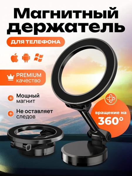 Магнитный держатель для телефона в автомобиль — надежная фиксация вашего устройства даже на неровной дороге! В комплект входит: магнитный держатель, 2 магнитные пластины, запасная клеевая поверхность и две круглых подложки. Чехлы и телефоны с функцией MagSafe крепятся БЕЗ металлических пластин сразу к держателю, на все остальные модели - нужно разместить магнитную пластину сверху чехла. Подставка кронштейн под телефон идеально подходит для всех моделей смартфонов iPhone и других. Оснащён мощными магнитами, которые обеспечивают крепкое сцепление с телефоном без риска падения. Компактный и стильный дизайн автомобильного крепления гармонично впишется в интерьер любого автомобиля. Благодаря поворотному механизму на 360°, вы легко установите смартфон в удобное положение - горизонтально или вертикально, можете установить крепеж для телефона на панель авто или на лобовое стекло. Подходит для водителей, которые ценят комфорт, безопасность и порядок в машине.