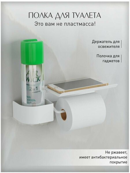 Достоинства:удобная вещь для туалета и ванной. полочка может использоваться для гаджетов, косметических средств или заколок и резинок. на нее можно поставить какой нибудь аксессуар ( диффузор или суккуленты). прочная. крепится на дюбеля. краска не стирается. может потому, что пользуюсь короткий промежуток времени. Недостатки:нет Комментарий:главное рулон туалетки не соскальзывает. ну или мини полотенце. советую к покупке. прослужит не один год.
