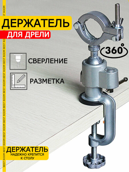 Держатель на струбцине для дрели, шлифовальной машины и электроинструмента Держатель на струбцине предназначен для дрели, шлифовальной машины, электроинструмента и гравировальной машинки. Он обеспечивает надежное крепление инструмента и удобство в использовании. Зажимная струбцина с винтовым механизмом сжатия обеспечивает надежное крепление инструмента. Ширина зажима составляет 350 мм, что позволяет использовать держатель для широкого спектра инструментов. Держатель имеет компактные размеры (высота – 80 мм, ширина – 50 мм, длина – 260 мм) и легкий вес (0,515 кг), что делает его удобным для хранения и транспортировки. Выбирая держатель на струбцине для дрели, шлифовальной машины или электроинструмента, вы получаете надежный и удобный инструмент для выполнения различных работ.