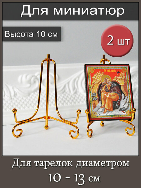 Раздвижная металлическая маленькая подставка для тарелки и миниатюр. Высота 10 см. Цвет золотистый, золотой. Подходит для тарелок, имеющих диаметр от 10 до 13 сантиметров. Подставка для иконы или книги гармонично впишется в любой интерьер в том числе и детский. Так же широко применяется в интерьере как опора для небольших предметов, крепление для маленьких фоторамок и картин, золотая подставка.