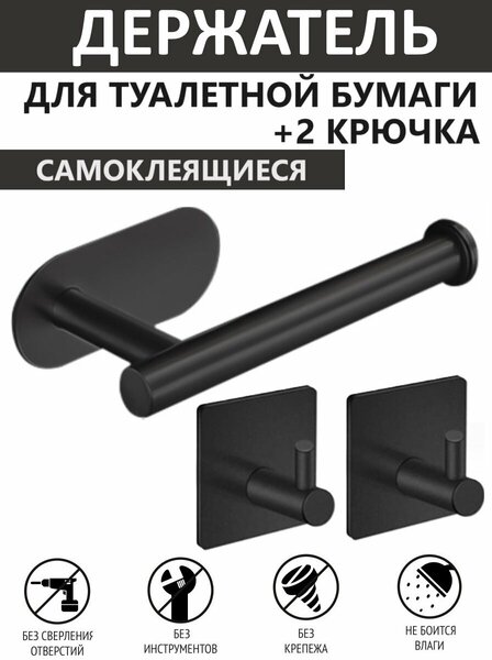 Держатель для туалетной бумаги 1 шт, Крючки для полотенец 2 шт
