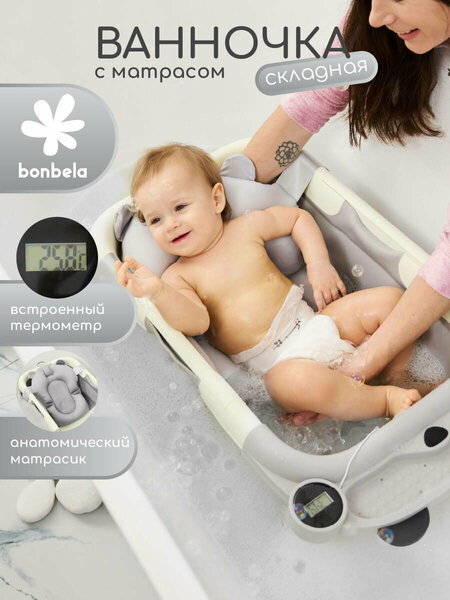 Детская ванна bonbela складная с термометром и мягким матрасиком