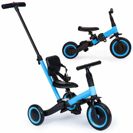 Детский беговел-велосипед 4в1 с родительской ручкой, синий - TR007-BLUE - это удобный, универсальный и надежный беговел для детей от 1 до 5 лет, с возможностью становиться велосипедом!