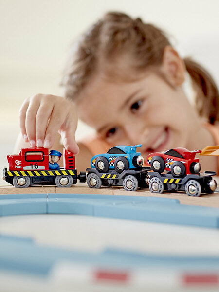 • Рекомендуется для мальчиков и девочек. • Возрастные рекомендации: от 3 лет. • 6 элементов в наборе: включая водителя, две гоночные машины и две транспортерные тележки. • Складная рампа для погрузки: у каждой транспортной тележки есть погрузочная рампа, которая складывается. • Совместима с другими наборами поездов Hape, что означает, что игры могут быть расширен. • Игрушка стимулирует творческую игру воображение. • Отлично подходит для маленьких мальчиков и девочек, начинающих автолюбителей. • Игрушка изготовлена из безопасных для детей и прочных материалов, гарантирующих, что это игрушка, которую ваш ребенок будет любить долгие годы. • Игрушка прошла контроль на безопасность и качество. Рекомендации: Рекомендации: • Рекомендуется для мальчиков и девочек. • Возрастные рекомендации: от 3 лет. Один из крупнейших в мире производителей игрушек. Hape руководствуется философией, что будущее принадлежит нашим детям, и создает игрушки, которые вдохновляют на игру и изучение мира, в котором мы живем. Все продукты соответствуют строгим международным стандартам качества и безопасности. Hape - новое поколение игрушек.