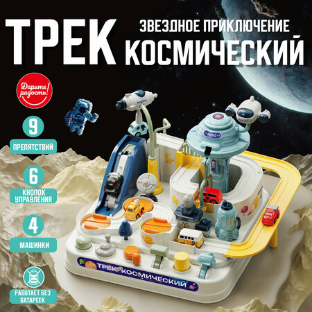 Целый парк развлечений для машинки! Ваш ребенок — главный диспетчер: управляет краном, эскалатором и даже запускает ракету! пуск! Ваш ребенок берет под контроль космодром! Это не просто трек, по которому катятся машинки. Это настоящий командный центр, где каждый элемент управляется юным инженером! Нажимай на кнопки, крути рычаги — и открывай новые пути для своего транспорта. ✨ 5 уникальных способов перемещения: вращай перекрёстки: Сам решаешь, куда свернет машинка! поднимайся на эскалаторе: Доставь машинку на новый уровень! запускай ракету: Самый зрелищный способ преодолеть расстояние! управляй краном: Аккуратно подними и перевези машинку! проезжай ПО качающемуся мосту: Проверь свою ловкость! почему этот трек — лучший подарок? полный комплект: В коробке вас ждет ВСЁ: основание, трек, кран, ракета, космический корабль, 4 машинки и даже дерево для антуража! развиваем, играя: Тренирует логику, моторику, причинно-следственные связи и пространственное мышление. Ребенок учится решать задачи и видеть систему. качество И безопасность: Прочные материалы (пластик, металл), безопасная сборка, соответствие стандартам. Для детей от 3 лет.