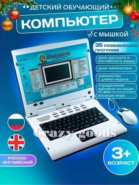 Детский обучающий и развивающий ноутбук это умная книга и настоящая находка для родителей и детей от 3 лет до 9 лет. Электронный учебник предоставит вашему ребенку интересные задания, упражнения и развлечения, которые превратят процесс учёбы в увлекательное приключение каждый день. Интерактивная игрушка включает 35 функций, а именно уроки русского и английского языка (буквы, алфавит, слова, грамматика, правописание, синонимы и антонимы), математики (цифры и счет, сложение и вычитание, умножение и деление), музыки, знакомство с днями недели, определение времени по часам, а также содержит веселые игры, мелодии и песни. Музыкальные и интеллектуальные программы обучения помогут ребенку в развитие множества навыков, таких как логическое мышление, мелкая моторика, воображение, внимание, память, творческие способности, речь и слух. Это незаменимый помощник на пути к новым знаниям и в подготовке детишек к школе. Маленький размер и легкий вес сделают этот компактный мини ноутбук лучшим спутником малыша в путешествие, в поездке или на прогулке. Персональный игрушечный компьютер также оснащен удобной мышкой, поэтому его использование станет еще более комфортным для детских ручек, а безопасный экран для глаз позволит деткам не ограничивать время занятий. Подарите вашему начинающему первооткрывателю мир удивительных открытий и бесконечных возможностей с помощью уникальной машины в виде детского компьютера. Это идеальный подарок для девчонок и для мальчишек на День рождения, Новый Год или любой другой праздник. Прикольная игрушка имеет в комплекте проводную мышку, инструкцию и полезные развивашки. Работает от батареек 3 штуки (в комплект не входят) x 1,5 АА Жмите на сердечко и добавляйте наш бренд в избранное.