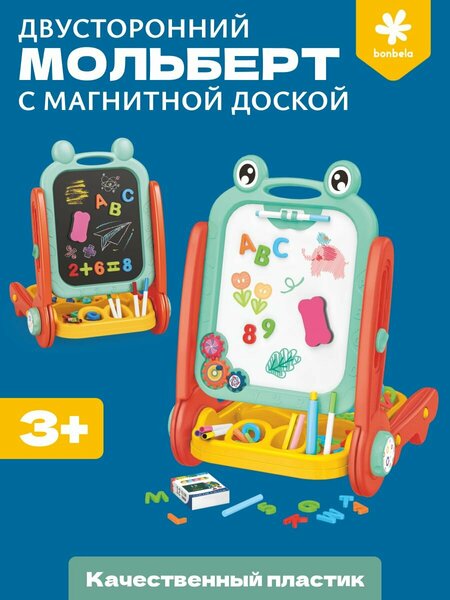 Магнитная доска для рисования - это универсальный инструмент для творчества, обучения и увлекательной игры. Она выполнена в виде мольберта с регулируемым углом наклона, что обеспечивает комфорт ребёнка и защиту его осанки. Особенность данной модели - двусторонняя поверхность: одна сторона предназначена для рисования мелом на тёмном фоне (яркие и чёткие цвета), а другая - для маркеров и обладает магнитными свойствами. Такой подход раскрывает широкие возможности для развития ребёнка: он может чередовать разные техники, легко стирать изображения губкой и придумывать новые сюжеты. Благодаря магнитным буквам, цифрам и арифметическим знакам процесс обучения превращается в занимательную игру: ребёнок с удовольствием осваивает алфавит, учится считать и самостоятельно составляет примеры. Слова и числа можно крепить на белую магнитную сторону доски, делая занятия наглядными и увлекательными. Безопасность и качество материалов обеспечивают длительный срок службы и позволяют использовать мольберт даже очень активным малышам. Регулируемый угол наклона помогает подобрать оптимальное положение для ребёнка, сохранив правильную осанку. Поверхности доски очищаются обычной салфеткой или влажной губкой. В комплекте предусмотрены все необходимые аксессуары: стикер, шесть маркеров, коробка с мелками, губка и набор магнитных букв, цифр и знаков. Это делает мольберт многофункциональным пространством для творчества и обучения. Двусторонняя магнитная доска станет незаменимым помощником родителям и педагогам, ведь она одновременно пробуждает интерес к рисованию, письму и счёту. Такая доска быстро превращается в любимую зону для игр и учёбы, наполняя каждый день малыша яркими впечатлениями, вдохновением и полезными навыками. Состав набора: стикер 1 шт, маркеры 6 шт, губка 1 шт, коробка с мелками 1 шт, магнитные: русский алфавит, цифры и арифметические символы.