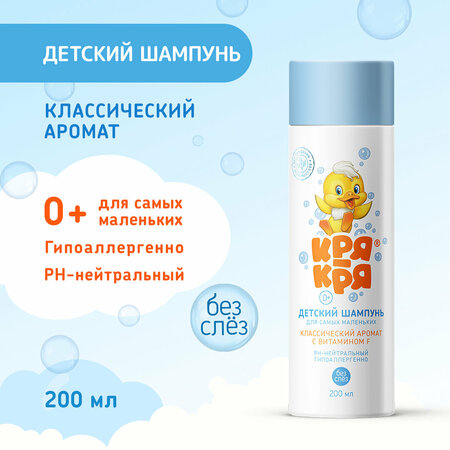 Детский шампунь Кря-Кря для самых маленьких 0+ с витамином F, гипоаллергенный, 200мл