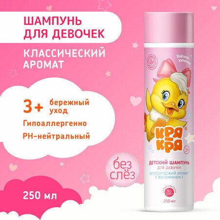 Детский шампунь для девочек 3+ Кря-Кря с витамином F, гипоаллергенный, 250 мл.