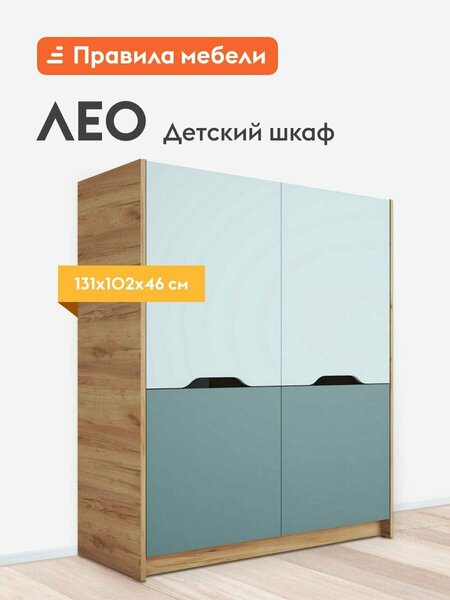 Детский шкаф Лео — стильная модель с оригинальным цветовым решением. Дверцы с ручками-вырезами открывают доступ к двум просторным секциям с полками и штангой. В таком шкафу найдется место для одежды, коробок с обувью или спортивной экипировки. Характеристики: