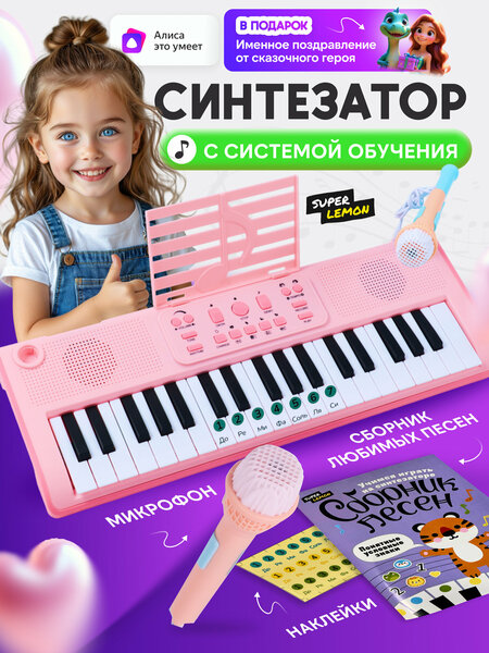 Обратите внимание! Синтезатор С одним активным динамиком (монодинамик). Представляем вашему вниманию детское музыкальное пианино Super Lemon. Это не просто игрушка, а полноценный синтезатор, который станет отличным подарком для вашего ребенка. Пианино выполнено в розовом цвете, что делает его привлекательным для девочек. Материал изготовления - пластик, что обеспечивает долговечность и безопасность использования. В комплекте с пианино идут микрофон, USB кабель, инструкция, держатель для микрофона, сборник песен и наклейки. Это позволяет сразу начать играть и обучаться, не тратя время на поиск дополнительных аксессуаров. У пианино 37 клавиш, что достаточно для начального уровня обучения. Встроенная акустическая система позволяет наслаждаться чистым и громким звуком. Питание осуществляется от батареек или сети, что делает его удобным для использования дома или в дороге. Особенностью пианино является наличие режима обучения. Это позволяет вашему ребенку постепенно осваивать игру на инструменте, следуя инструкциям и получая обратную связь от микрофона. Возрастная группа, для которой предназначено пианино, варьируется от 1 до 7 лет. Это делает его отличным выбором для детей разных возрастов, начиная от малышей и заканчивая детьми постарше. В целом, детское музыкальное пианино Super Lemon - это не только игрушка, но и инструмент для развития музыкальных способностей вашего ребенка.