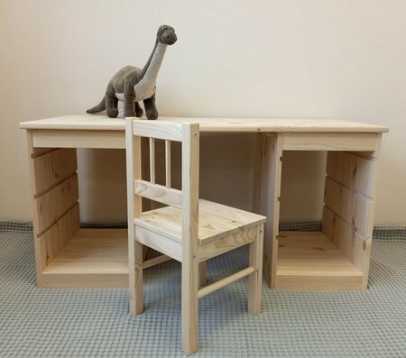 Детский стол и стул Труфаст Trofast: комфорт и безопасность для вашего ребенка Прочность и долговечность Комплект детский стул и стол Труфаст Trofast изготовлен из массива сосны, что обеспечивает высокую прочность и долговечность. Благодаря использованию натурального материала, стол и стул не только выглядят стильно, но и являются экологически безопасными для вашего ребенка. Без покрытия Стол и стул выполнены без покрытия, что позволяет сохранить естественный вид и аромат сосны. Это добавляет уют и тепло в интерьер детской комнаты, а также обеспечивает безопасность для здоровья вашего ребенка. Размеры и функциональность Размеры стола составляют столешница 110*48 см (толщина столешницы 1,8 см), высота стола 54 см. Размеры стульчика: высота 30 см без спинки, сиденье 27*29 см. Выбирая детский стол и стул Труфаст Trofast, вы обеспечиваете комфорт и безопасность вашему ребенку, а также создаете уютную и стильную атмосферу в детской комнате.