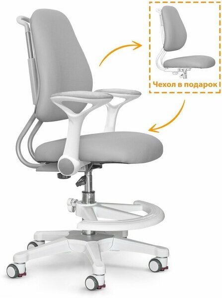 В подарок к креслу идут съемные чехлы из дышащей ткани, которые обеспечат надежную защиту от загрязнений. Особенностью модели является наличие подставки для ног с возможностью регулировки высоты. Благодаря такой функции кресло можно использовать вместе со стандартным нерегулируемым столом. У кресла независимая регулировка высоты спинки и глубины сиденья, что позволяет еще более точно подстроить кресло под параметры ребенка. Высота всего кресла регулируется с помощью качественного газлифта. Отсутствие вращения газлифта помогает зафиксировать правильное положение ребенка во время занятий. Приятным бонусом станет наличие откидных подлокотников Нейлоновые колесики автоматически блокируются при нагрузке от 20 кг. Блокировка отключается специальными стопорами. У кресла есть ручка из качественного пластика для удобного перемещения по комнате.