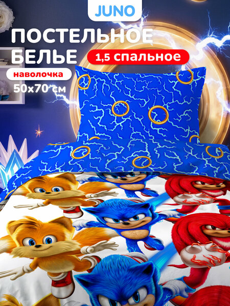 Хотите преобразить детскую и обрадовать ребенка? Пора приобрести новое детское 1,5 спальное постельное белье! С суперским комплектом-полуторкой от Juno интерьер заиграет новыми красками, а детская комната – и, дома, и на даче — станет еще эстетичнее и уютнее, чем прежде. Соник Икс — самый быстрый ежик в мире — а также ехидна Наклз и лисенок Тейлз — добавят в детскую ярких красок! Комплект с синими простынью и наволочкой стильно смотрится с белым пододеяльником. Постельное белье с игровыми колечками, изображенными на простыни и наволочке, и зверушками из мультфильма, которые украшают собой пододеяльник, просто создано для любителей позитивного мультфильма! Постельное белье с красивым принтом идеально подойдет на односпальную кровать с матрасом 80х180, 90х180, 90х190, а также 80х200 см, 90х200 см. Хлопковый комплект включает: пододеяльник 215х143 см, простынь 214х150 см и наволочку 50х70 см. 1,5 спальное постельное белье, сделанное из нежнейшего поплина (ткань 100% хлопок) — выбор в пользу комфорта вашего любимого ребенка и летом, и зимой. Он будет быстро и с удовольствием засыпать на сказочно-мягком односпальном постельном белье, которое отлично сохраняет милый рисунок. Полутороспальное постельное белье на одноместную кровать из поплина подарит детям самые приятные сны. Такой хб набор порадует девочку и мальчика в день рождения. Мягкое полуторное постельное белье — отличная покупка в детскую и оригинальная идея подарка по любому поводу: например, в честь новоселья! Это лучший подарок для дочки и сына или внука и внучки, а также друга и подруги вашего ребенка. Комплект на полутороспальную кровать также осчастливит крестника и крестницу. За качественным полутороспальным комплектом нетрудно ухаживать: он стирается в машинке на деликатном режиме (40 С). Перед стиркой выверните КПБ наизнанку, чтобы лучше сохранить рисунок, и используйте щадящие средства. Прикольное постельное белье 1.5 спальное производится в Иваново, России, по высоким стандартам качества и безопасности. Родители могут быть спокойны за своих детей: теперь они будут крепко и сладко спать по ночам на мягкой постели. Обратите внимание, что постельное белье 1 5 для ребенка является невозвратным товаром. Просьба проверять спальные комплекты и постельные принадлежности на целостность, не покидая пункт выдачи. Приятных покупок и пусть Ивановский текстиль всегда радует вас. Мы знаем, о чем мечтают дети!