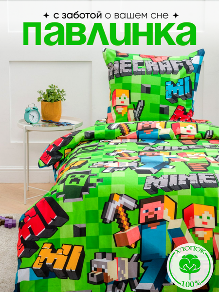Детское постельное белье 1.5 спальное Павлинка «Майнкрафт» - это сочетание качества, комфорта и стильного дизайна. Изготовлено из 100% хлопка, что гарантирует мягкость, прочность и долговечность. Тип ткани - бязь, что обеспечивает высокую износостойкость и устойчивость к деформации. Комплект включает в себя 1 пододеяльник размером 145 х 215 см, 1 простынь размером 150 х 215 см и 1 наволочку размером 70 х 70 см. Цвет комплекта - зеленый, что придает ему яркость и оригинальность. Детское постельное белье Павлинка «Майнкрафт» - это не только комфорт и уют, но и стильный элемент интерьера детской комнаты.