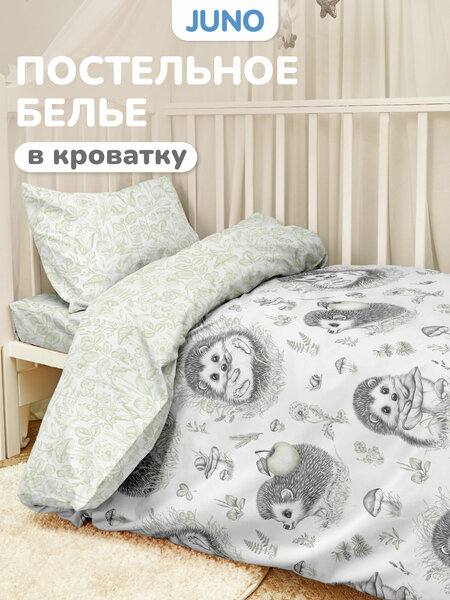 Ищете неповторимое постельное белье для детской? Juno знает, как порадовать вашего ребенка! Детское постельное белье (хб) для новорожденных выполнено в приятных оттенках. Малыш полюбит красивое постельное белье с принтом. Постельное белье (хб) для новорожденных с ежатами выполнено в белом и зеленом оттенках. Серые ежики и зеленые листочки прелестно смотрятся вместе. Ребенок полюбит красивый бело-салатовый комплект с очаровательными лесными зверушками. Комплект постельного белья для детей в круглую или овальную детскую кроватку, а также прямоугольную 120 на 60 (120х60) выполнен из нежнейшего поплина (100% хлопок). На таком мягком, уютном и эстетичном комплекте в кроватку ваш малыш будет засыпать гораздо быстрее. Всесезонное постельное белье для детской кровати подарит вашему ребенку максимальный комфорт в часы ночного сна, а еще оно отлично сохраняет рисунок. С мягким и нежным комплектом постельного белья для малыша новорожденным будет сладко спать в детской комнате дома и на даче. Это универсальный подарок для девочки или мальчика: например, дочки и сына, внука или внучки на День Рождения и другие праздники. Он легко поддержит выбранную родителями эстетику для комнаты! Ясельное постельное белье — приятный сюрприз на выписку или в роддом: его можно подарить новорожденным брату или сестре. В хлопковый спальный набор для детской кроватки с матрасом 120х60, который можно купить для крестника или крестницы, входят: наволочка 40х60 см, простынь 150х110 см и пододеяльник 147х112 см. За постельным бельем из поплина легко ухаживать: кпб для младенцев стирается в машинке на 40С. Детское постельное белье российского производства (Иваново) с красивым рисунком, которое делается по всем стандартам безопасности — то, что нужно в дом! Качественный Ивановский текстиль для малышей порадует любого, кто хочет спать в милой постели. Постельное белье — лучший подарок ребенку. Мы знаем, о чем мечтают дети!