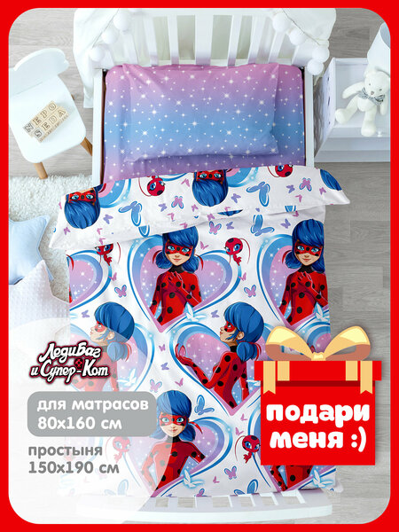 Комплект на кровать юниор с красочным дизайном от непоседы — лучший подарок! Детское постельное белье 1 спальное с любимым персонажем точно порадует ребенка! Детское постельное белье с Леди Баг будет красиво смотреться на кровати. Все знают Леди Баг - отважную, добрую и умную супергероиню. Комплект с её изображением позволит девочке представить себя на месте легендарной “божьей коровки”. Маринет мило смотрится на белом пододеяльники с лиловыми сердцами. А розово-голубые простынь и наволочка с легким градиентом добавят в комнату нотки нежности. Хб набор постельного белья подойдет для детей, которые спят в кроватке-юниоре. В хлопковый комплект для девочек входят: простынь 150х190 см на матрас 140х70 см (140*70, 70 на 140), 140х80 см (140 80, 80 на 140) или 160х80 (160 80, 80 на 160), пододеяльник 147х112 см и наволочка 40х60 см. Детское постельное односпальное белье из нежного поплина (100% хлопок) — суперская находка для тех, кто хочет окружить своего малыша, а также внучку и крестницу заботой и лаской дома и на даче. Ребенок будет наслаждаться каждой минуткой сна на мягком и безопасном постельном белье. КПБ из поплина для ребенка — настоящее чудо для ваших любимых деток. С ним дома — в комнате девочки — будет еще приятнее засыпать в милой постели! Высокое качество комплекта — причина, по которой ваш ребенок — дочь, а также маленькая сестра будет использовать его в спальне долгое время. При правильном уходе вы лучше сохраните внешний вид постельного белья и его рисунок: комплект стирается в машинке на деликатном режиме (30С). При стирке лучше не смешивать разноцветные вещи. Наше постельное белье на одноместную кровать и другие товары, сделанные в Иваново, подарят вашим детям счастье! Это отличный подарок , день рождения или другие праздники. Обратите внимание, что постельное белье ребенку является невозвратным товаром. Просим проверять спальные комплекты на целостность, не покидая пункт выдачи. Качественный Ивановский текстиль для дома порадует любого летом или зимой. непоседа — любимые персонажи всегда рядом.