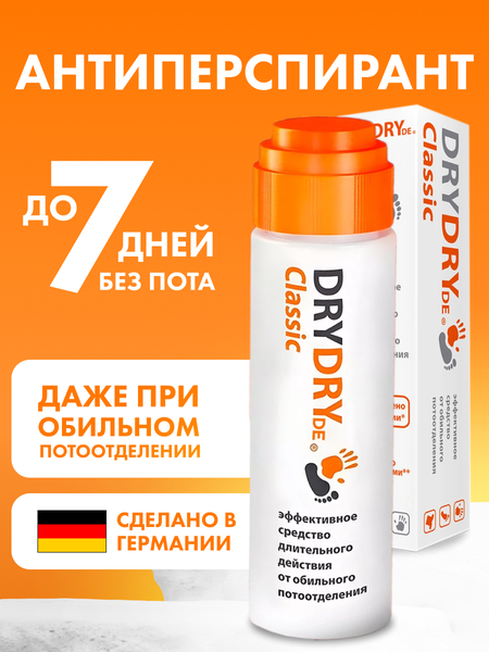 Антиперспирант Classic - это универсальное средство с драйэффектом для защиты тела от неприятного запаха пота как для женщин, так и для мужчин. Предназначен для эффективного контроля над сильным потоотделением и надежной защиты против запаха подмышек, гипергидроза рук и ног на протяжении длительного времени. Специальная защитная формула с хлоридом алюминия в составе обеспечивает активный антибактериальный эффект, который предотвращает размножение бактерий, ответственных за неприятный запах пота. Благодаря натуральным компонентам в составе, он бережно заботится о коже, предотвращая раздражения даже чувствительной кожи. Этот дезодорант драйдрай обладает высокой степенью защиты от обильной и повышенной потливости стоп и ладоней, предотвращая появление следов и пятен на одежде и обеспечивая заботу, уход, сухость и комфорт на протяжении всего дня. Благодаря пролонгированному действию он обеспечивает надежную защиту даже в условиях повышенной активности. Косметический препарат имеет легкую текстуру жидкости, которая быстро впитывается, без ощущения липкости или жирности на коже, оставляя ее чистой и сухой. Его удобный флакон позволяет легко и точно наносить средство на подмышечные области, обеспечивая равномерное покрытие. В средстве германского производства аппликатор сразу встроен, в отличие от шведского с черной крышкой, где его необходимо прикручивать самостоятельно. С этим антиперспирантом вы можете быть уверены в свежести и чистоте на протяжении всего дня. Независимо от того, занимаетесь ли вы спортом, находитесь в офисе или просто проводите время на свежем воздухе, этот дезодорант обеспечит надежную защиту.