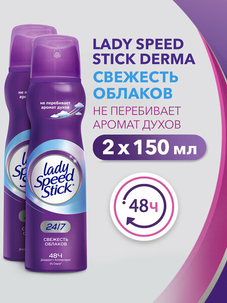 Дезодорант женский антиперспирант спрей Lady Speed Stick 24/7 Свежесть Облаков: - обладает свежим и легким ароматом; - не перебивает аромат духов; - обеспечивает эффективную защиту от пота и запаха. Эффективная защита 24 часа в сутки, 7 дней в неделю. Не распылять вблизи открытого огня и раскаленных предметов. Не распылять на раздраженную кожу. Избегать попадания в глаза Не хранить вблизи открытого огня и раскаленных предметов. Хранить в недоступном для детей месте. Предостережения: Баллон под давлением! Опасно! Не разбирать. Не прокалывать и не сжигать после использования. Защищать от воздействия прямых солнечных лучей и нагревания свыше 50С. Не распылять вблизи открытого огня и раскаленных предметов. Не распылять на раздраженную кожу. Избегать попадания в глаза. При попадании в глаза тщательно промойте их водой и обратитесь за медицинской помощью.