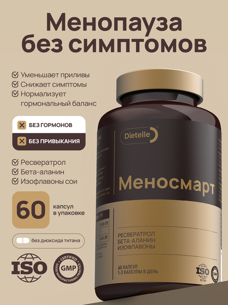 Меносмарт от Dietelle - это комплекс для негормональной поддержки в период менопаузы, который, уже через 30 минут после приема, снижает негативные проявления менопаузы.