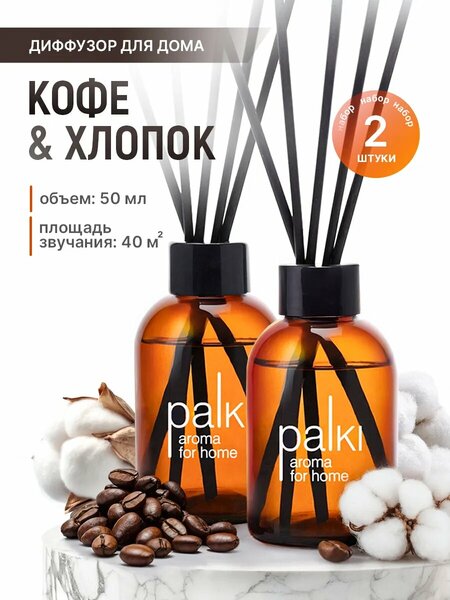 Обращаем Ваше внимание, что в одной подарочной коробке лежат 2 арома диффузора и 10 палочек! Представляем Вам набор диффузоров с палочками: "Кофе" и "Хлопок" от российского бренда PALKI. Это не просто предметы интерьера, это настоящий подарок для дома. В состав комплекта входят две бутылки из стекла с ароматизированной жидкостью объемом 50 мл, 10 натуральных фибровых палочек и подарочная коробка. Черные палки поглощают жидкость, а затем медленно испаряют кофейный аромат, наполняя комнату или кабинет нежным и стойким запахом. Парфюмированный освежитель подойдет как для женщин, так и для мужчин. Такой декор идеально впишется в любой интерьер: на кухню, в спальню, в ванную и туалет. С помощью арома пахучки можно создать атмосферу спокойствия. Освежите воздух и создайте комфорт в квартире, рабочем офисе или салоне красоты. Необычный флакон будет готовым подарочком для любого праздника: день рождения (др) подростков, новоселье друзей, годовщина с любимой женой, юбилей свекрови или просто как идея без повода порадовать близкого человека. Интересная парфюмерия подчеркнет индивидуальный стиль и вкус друга. Вручите стеклянную баночку с туалетной водой бабушке или дедушке, взрослой сестре или брату, подростку дочери или молодому сыну - новый летний комнатный парфюм станет оригинальным и полезным презентом на память. Стильная упаковка добавит шарма и эстетики вашему сюрпризу. Этот аромадиффузор - отличный выбор для подарка маме и папе, лучшей подруге (лп), офисным коллегам и даже учителю. Ароматическая емкость наполнит домик приятной свежестью из букета эфирных масел и духов. Оригинал безопасен для здоровья, ведь мы используем только качественное сырье и заботимся о наших клиентах. Диффузор не содержат спирта, только высококачественные парфюмерные основы и композиции производства Франции. Подходит для детей - можно купить дочке и поставить на детский стол. Ароматизатор для дома будет не только декоративным элементом, но и функциональным аксессуаром, который наполнит свежим запахом любое помещение. Презентуйте готовый новогодний подарок на Новый Год 2025 (нг год змеи) и Рождество.