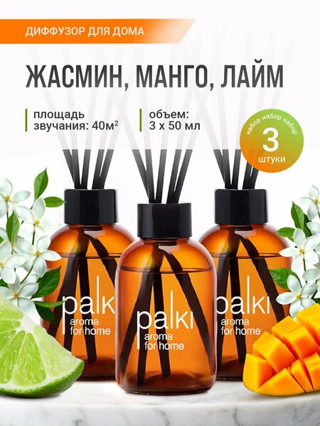 Представляем Вам набор из трех диффузоров с палочками: "Жасмин, Манго и Лайм" от российского бренда PALKI. Это не просто предметы интерьера, это настоящий подарок для дома. В состав комплекта входят три бутылки из стекла с ароматизированной жидкостью объемом 50 мл, 15 натуральных фибровых палочек, 3 подарочных коробки и брендированный транспортировочный короб. Черные палки поглощают жидкость, а затем медленно испаряют ароматы спелого и сочного фрукта, цитрусовых и сладких цветов, наполняя комнату или кабинет нежным и стойким запахом. Парфюмированный освежитель с фруктовым и цветочным запахом подойдет как для женщин, так и для мужчин. Такой декор идеально впишется в любой интерьер: на кухню, в спальню, в ванную и туалет. С помощью арома пахучки можно создать атмосферу спокойствия. Освежите воздух и создайте комфорт в квартире, рабочем офисе или салоне красоты. Необычный флакон будет готовым комплектом на праздник: день рождения (др) подростков, новоселье друзей, годовщина с любимой женой, юбилей свекрови или просто как идея без повода порадовать близкого человека. Интересная парфюмерия подчеркнет индивидуальный стиль и вкус друга. Вручите стеклянную баночку с туалетной водой бабушке или дедушке, взрослой сестре или брату, подростку дочери или молодому сыну - новый комнатный парфюм станет оригинальным и полезным презентом на память. Стильная упаковка добавит шарма и эстетики вашему сюрпризу. Эти аромадиффузоры отличный выбор для подарка маме и папе, лучшей подруге (лп), офисным коллегам и даже учителю. Ароматическая емкость наполнит домик приятной свежестью из букета эфирных масел и духов. Оригинал безопасен для здоровья, ведь мы используем только качественное сырье и заботимся о наших клиентах. Диффузор не содержат спирта, только высококачественные парфюмерные основы и композиции производства Франции. Подходит для детей - можно купить дочке и поставить на детский стол. Ароматизатор для дома будет не только декоративным элементом, но и функциональным аксессуаром, который наполнит свежим запахом любое помещение. Презентуйте готовый новогодний подарок на Новый Год 2025 (нг год змеи) и Рождество.