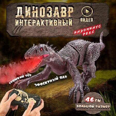 Динозавр интерактивная игрушка на радиоуправлении Тирраннозавр со светом, паром из пасти и звуком